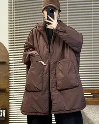 芊米鑫~2025秋冬中长款连帽大口袋韩版休闲宽松版百搭棉服外套