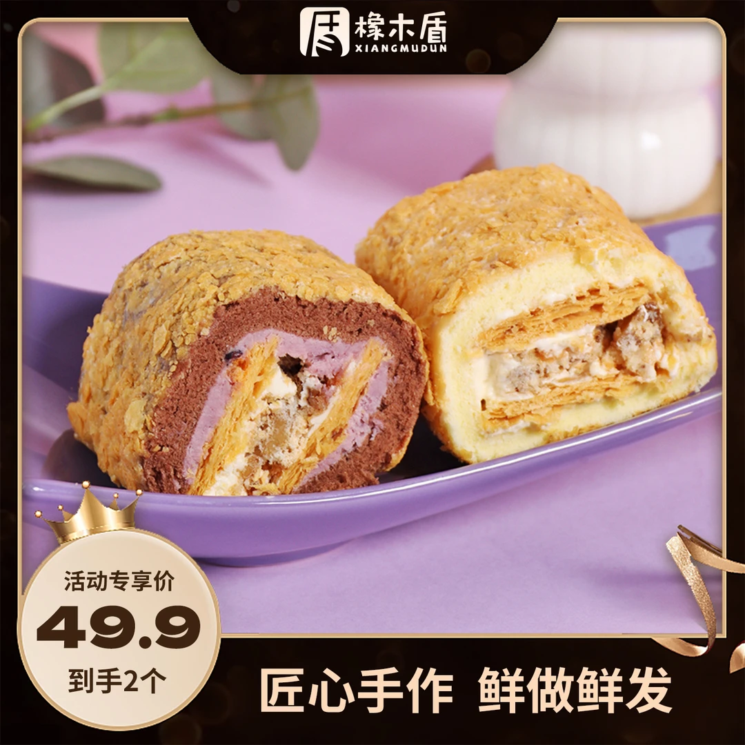 橡木盾手作拿破仑蛋糕卷组合 芋泥原味轻甜甜品手工制作冷链运输